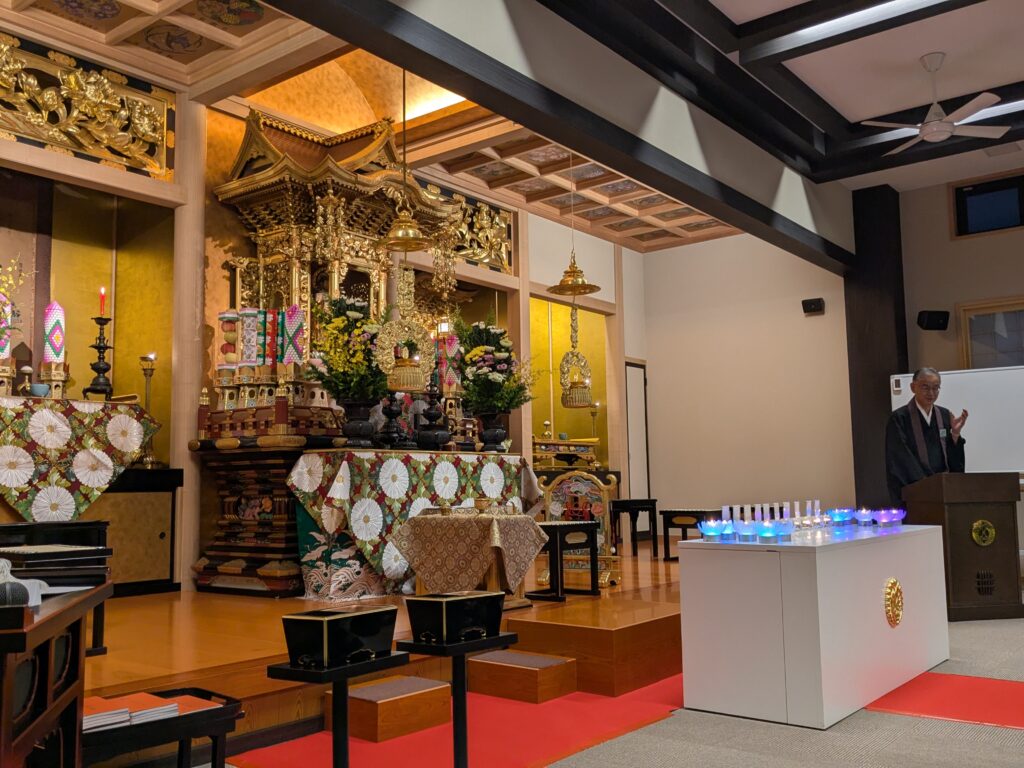 逮夜法要後、30分休憩してから初夜法要の時間となり、花あかりとたいせつな人へのメッセージなどの時間を設けていたので、バタバタしてしまい住職自身反省しなければならないことが多々ありました。