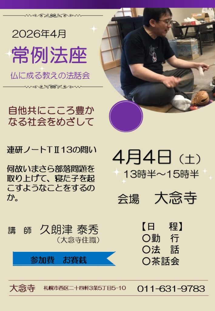 以上、よろしくお願いいたします。なもあみだぶつ