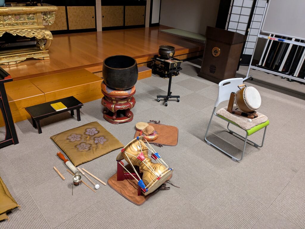 去る4月14日、念仏会を開催しました。はじめて参加してくださった方がおり、2人で『正信念仏偈』とお念仏を称えました。正信偈は木鉦で拍子をとりながらゆっくりお勤めをして、お念仏は木魚や韓国の太鼓を打ちながら称えました。終了後、参加者から「人数が少なくても楽器があれば寂しくない」と仰ったことば印象に残りました。